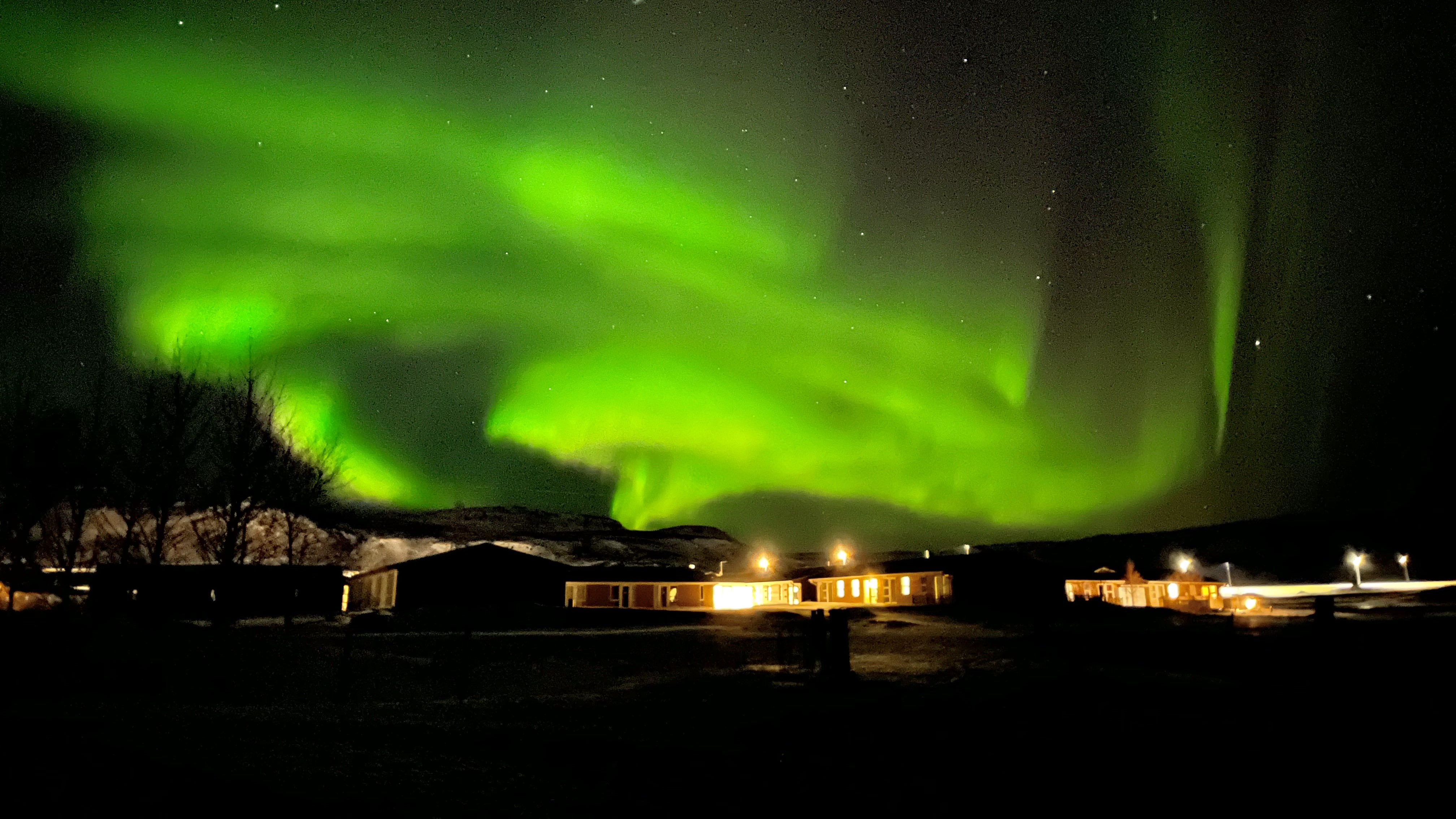 After breakfast, your guide meets you for a short introduction in the stable. The guide will provide the necessary riding equipment (riding helmet, warm overall or rain gear) and start with a short riding demonstration before you get to know the horses during a few rounds in the paddock. Today we ride 4-4.5 hours, starting with the tour Meadows and Mountains. We ride on soft trails along the meadows surrounding our farm, a good opportunity to get familiar with the special gait of the Icelandic horse, the “tölt”. We then follow the river Gljúfurá, head towards the volcanic mountains and ride on an old route along the slopes of the mountain Reykjafjall. Our reliable horses take you up and down the trail, while you enjoy nice views of the diverse landscape between the ocean and the volcano Hengill. Back at the farm we warm up with light lunch before we choose horses for the afternoon program Winter Warmth. We spend another hour on horseback before driving to the thermal swimming pool in Hveragarði to soften up in soothing, warm geothermal water, relax in the steam sauna or take a swim in the comfortably warm outdoor pool. Imagine sitting in a steamy hot tub as a light snowfall turns the grass around you white. Afterwards, coffee and home baked cake will be served in the cozy environment of the hotel. We check the Northern Lights forecast and get some useful information about this natural phenomena. If the forecast is favorable, and the sky is clear, we look out for the lights at the farm or go on a hunt!
